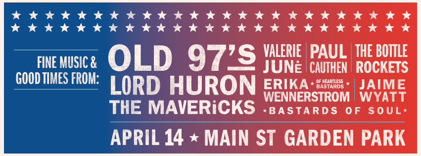 Old 97's County Fair returns to Main Street Garden in Dallas on Saturday, April 14, 2018. Alongside Old 97's, the lineup includes Los Angeles-based indie rock group Lord Huron, country-steeped garage veterans The Mavericks, singer/songwriter and multi-instrumentalist Valerie June, as well as long-time national touring acts The Bottle Rockets, Erika Wennerstrom of Heartless Bastards, Paul Cauthen, Jamie Wyatt and Bastards of Soul.