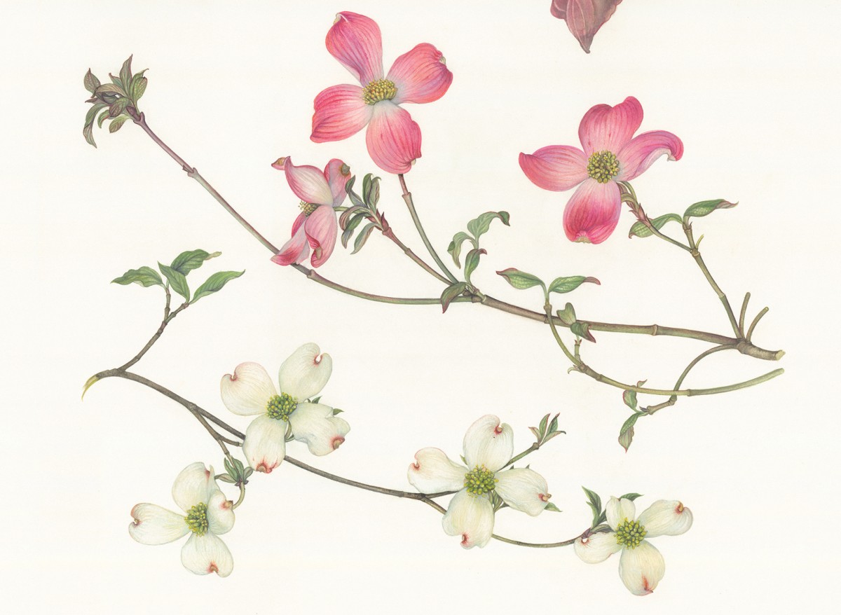 Working in collaboration with the US Botanic Garden, the exhibition includes plants from around the US, from cacti to woodland wildflowers to trees. The work shown in this exhibition represents only a small percentage of the estimated 20,000+ plant species in North America. Although a small percentage, subjects range from species new to science and threatened with extinction, to those that are quite widespread and familiar. Members of the American Society of Botanical Artists worked over four years on the project, creating 240 images of U.S. native plants. Forty-six 46 works were selected by jurors featuring plants from around the country, including the flowering dogwood of East Texas, saguaro cactus from the desert southwest, bigleaf maple from the west coast, and numerous species of the eastern U.S. Familiar plants are shown, including sunflowers and violets, as well as rare species such as lady’s-slipper orchids.
