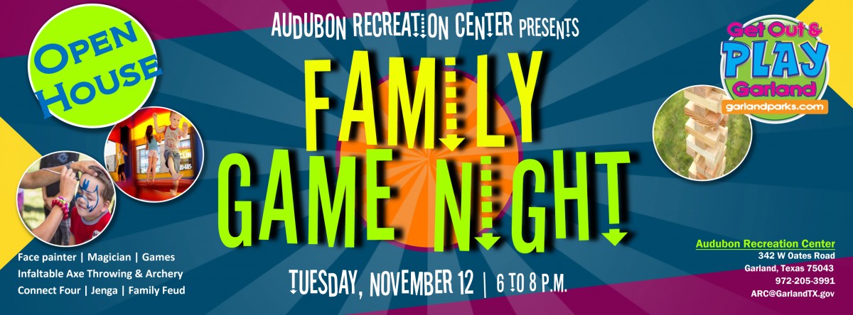 Audubon Recreation CenterFamily Game Night on Tuesday, Nov. 12 6 to 8 p.m.