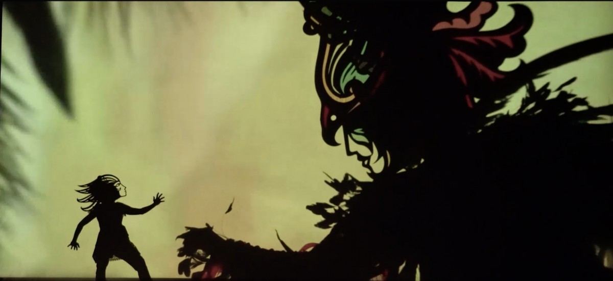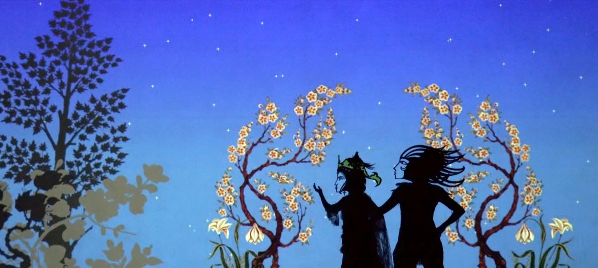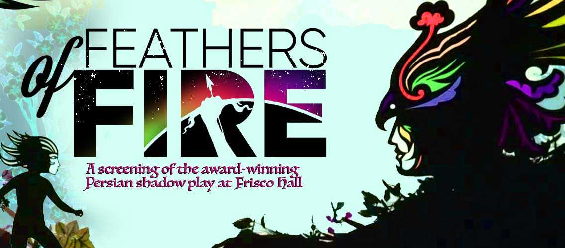 Based on Rahmanian’s own illustrated book, Shahnameh: The Epic of the Persian Kings (2013), Feathers of Fire utilizes internationally recognized theater director Larry Reed’s hallmark shadow casting methods. Reed is one of the few American dalangs (“shadow masters”) of traditional Balinese Wayang Kulit style. In this show, more than 160 shadow puppets and performers are featured in elaborate, handmade masks and costumes. Over 100 digitally animated backgrounds lend an authentic texture to the performance — all seamlessly choreographed and projected on a 15’ x 27’ screen—creating the feeling of live animation. The original score is by acclaimed Iranian composers Loga Ramin Torkian and Azam Ail of the band Niyaz, who have been described by the Huffington Post as “an evolutionary force in contemporary Middle Eastern music.”