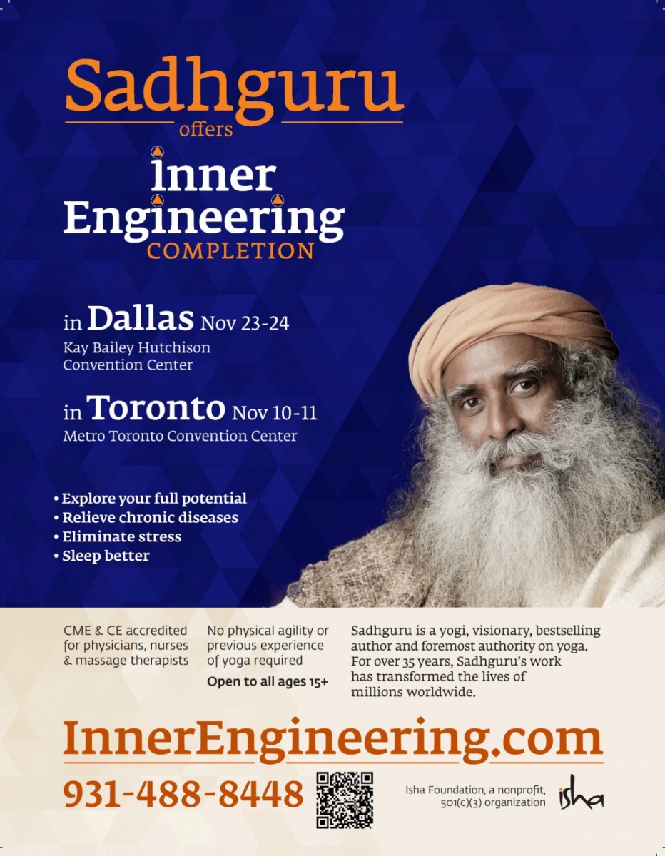 Take an opportunity to transform your life during @InnerEngineering with New York Times bestselling author @sadhguru in Dallas at Kay Bailey Hutchison Convention Center of Dallas from Nov. 23-24. Establish clarity, health and joy in your life with this technology for well-being, including a powerful 21‑minute practice for personal growth directly from Sadhguru. Find more @isha_usa programs near you. Learn more: https://www.innerengineering.com