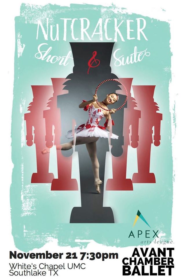 Apex Arts League is pleased to welcome the Avant Chamber Ballet in their performance of "Nutcracker: Short and Suite" in Southlake, TX with live music. This family-friendly, one-hour performance is a perfect introduction to this classic tale.
