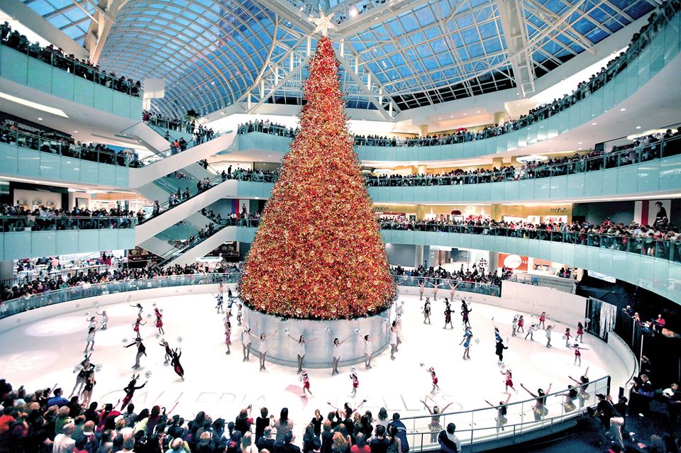 Every free show features Missile Toes, Galleria’s ice-skating, back-flipping, pyrotechnic Santa Claus, live performances by Olympic and National Champion-ranked skaters, and local children who introduce the lighting of the country’s tallest indoor tree.