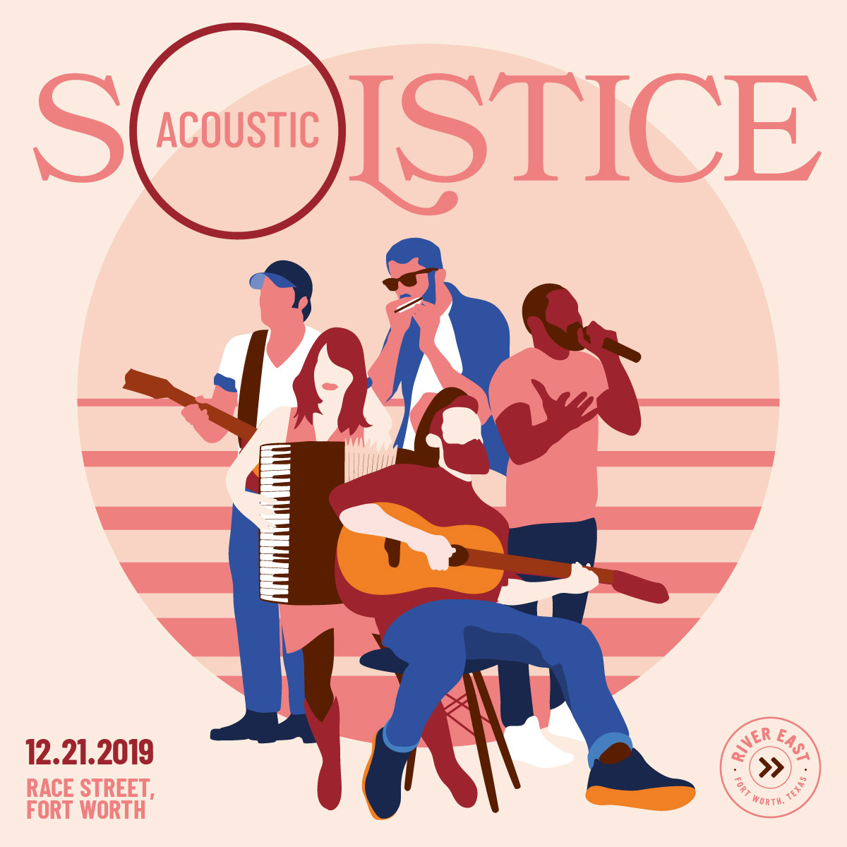 Acoustic Solstice is FREE acoustic music, arts and holiday market event that takes place on block 2900 Race Street, Fort Worth. December 21, 2019.