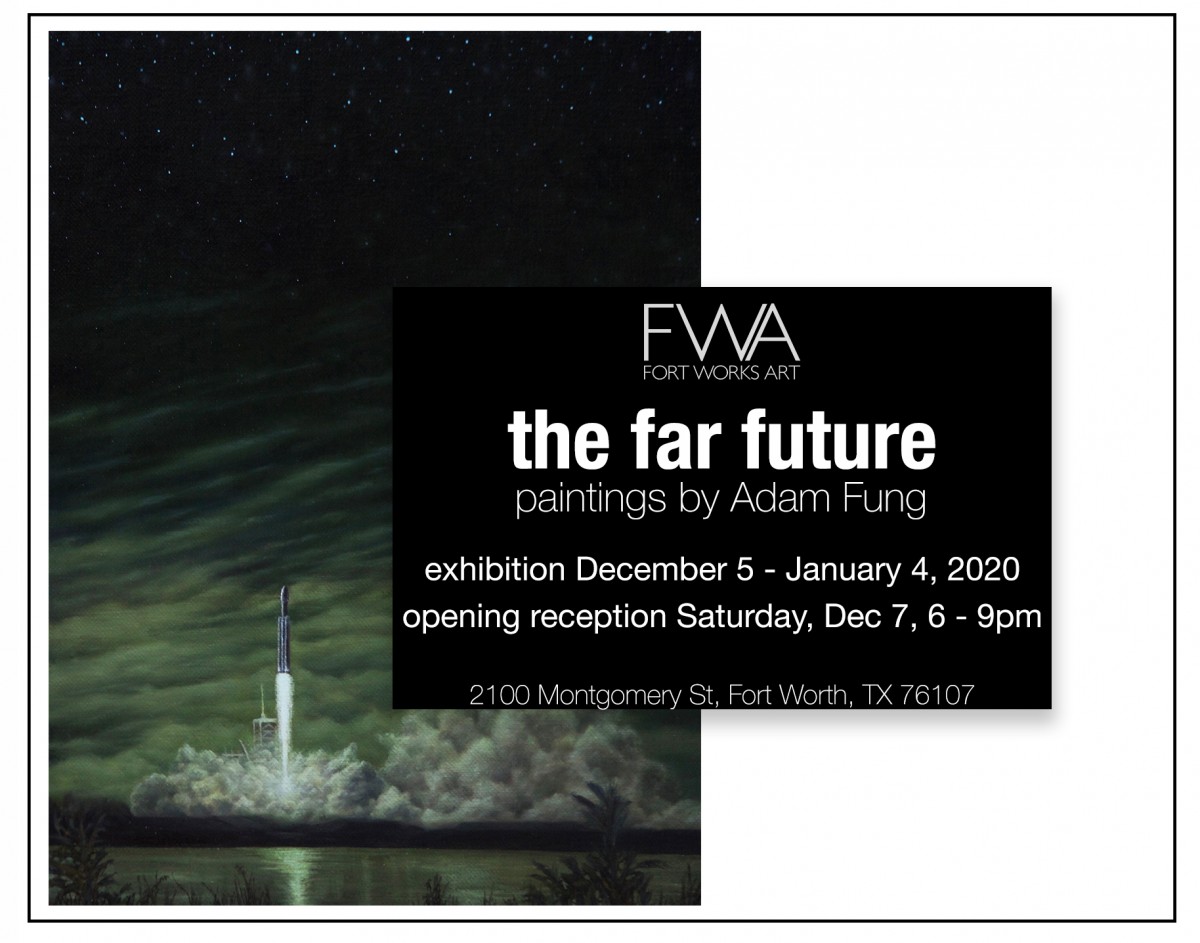 Fort Works Art is excited to present The Far Future, a solo exhibition by Adam Fung, Associate Professor of Art at Texas Christian University and a new addition to the Fort Works Art roster of contemporary Fort Worth artists. The exhibition opens with a reception on December 7th, 2019 from 6 to 9:00pm and will be on display until January 4th, 2020. The Far Future showcases 30 oil-on-linen paintings from Fung's 'Arctic' series about his expedition to the Arctic Circle, as well as 'XnatureX', a new body of work documenting the 2018 Space X launch of the most powerful rocket in history and the dichotomy of wonder and trepidation that follows such a monumental point in human history.