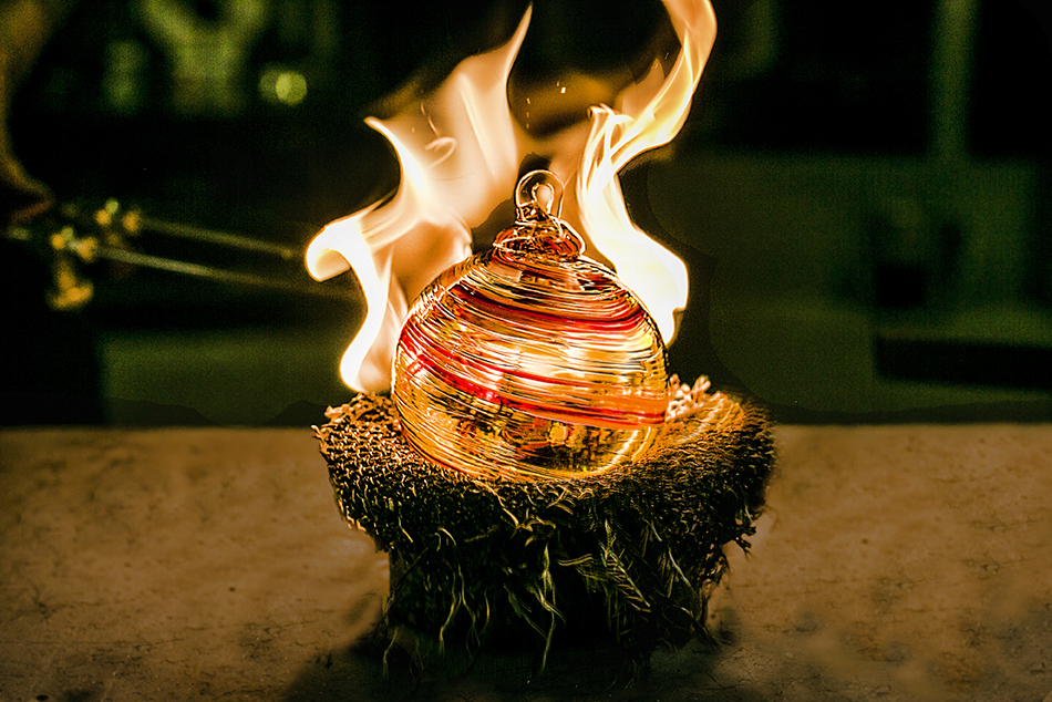 Watch the glassblowing artists finish creating your ornament right before your very eyes.