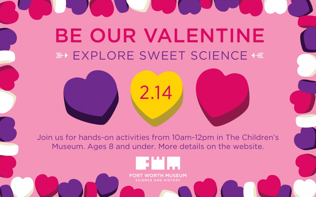 Come Be Our Valentine at the Museum! Explore sweet science, and participate in hands-on activities this Valentine’s Day from 10 AM – 12 PM in our Children’s Museum. This event is designed for our Valentines 8 and under. This event will be a fun-filled experience for families and their children to celebrate Valentine’s Day in a special, unique, and creative way!