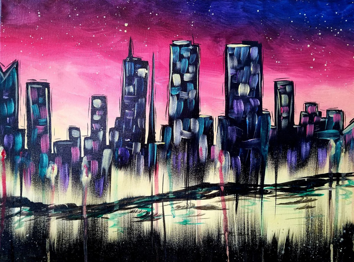 Wednesday, Feb 12th at 7pm we will guide you through our painting of this amazing painting of the Fort Worth Skyline!