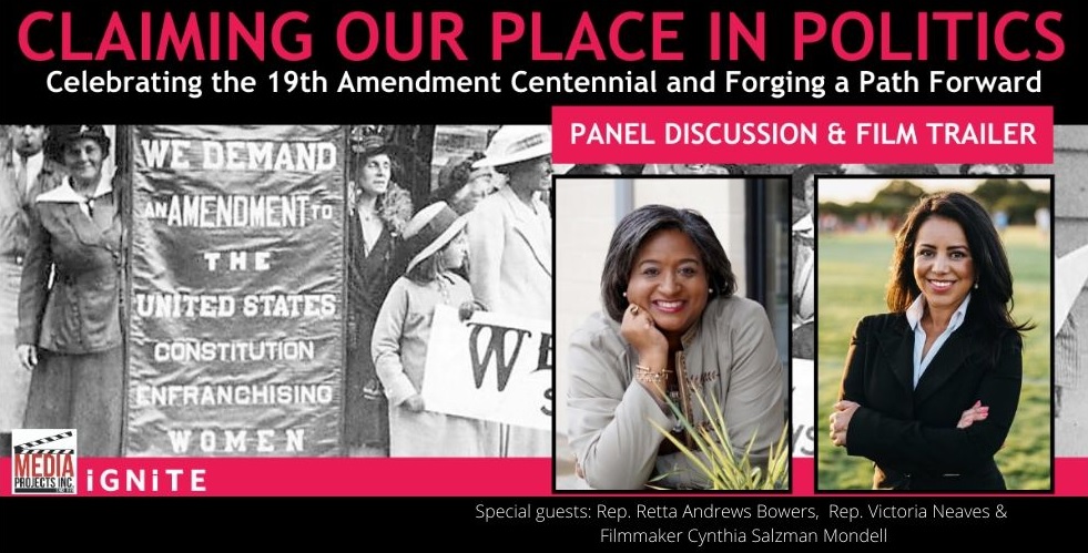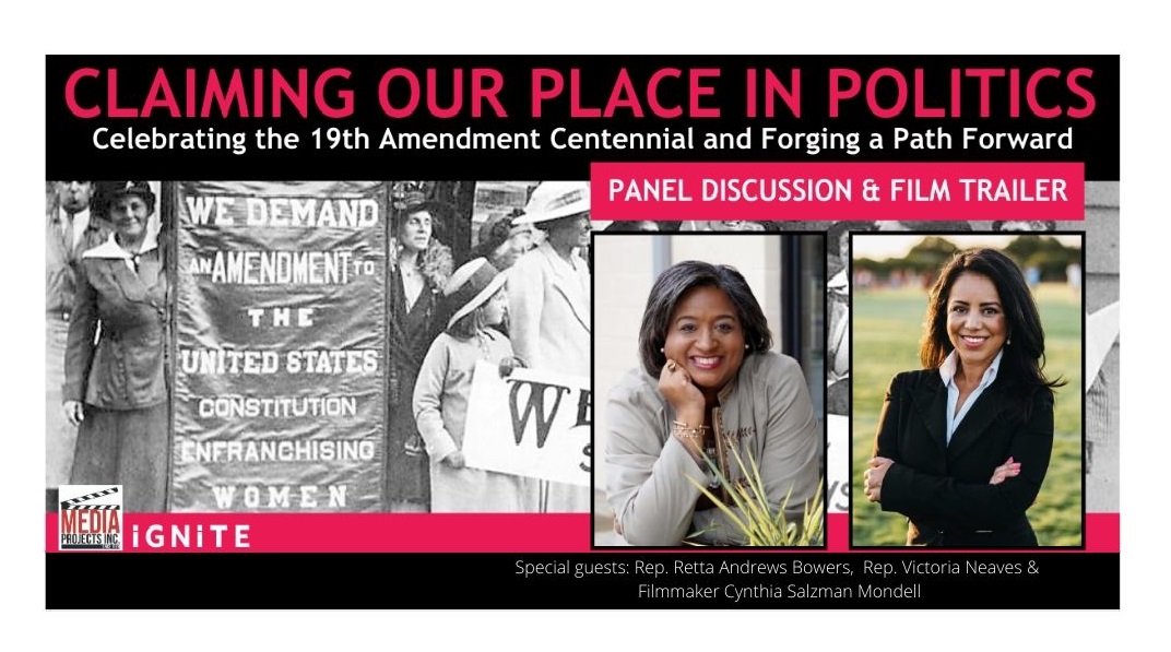 Ignite and Media Projects present Claiming our Place in Politics. This event will feature film trailer celebrating women getting the right to vote and a panel discussion