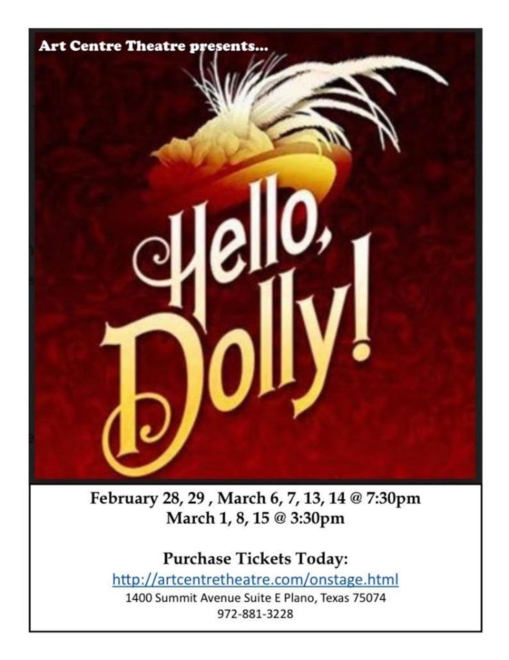 Hello, Dolly! features the music of Jerry Herman and tells the tale of Dolly Levi, an over the top match maker, who is passionate about the lives of those around her and always has the right answer. While on her journey to marry Horace Vandergelder, a stubborn and grumpy wealthy businessman, she meets Horace's head clerk, Cornelius. Cornelius is ready for an adventure and asks Barnaby, his young and bright eyed assistant to come along. WHile on their adventure, they meet Irene, a widowed hat shop owner, and her well behaved and timid assistant, Minnie. All of these wonderful characters will leave you in stitches and give you a night of entertainment that you won't soon forget!