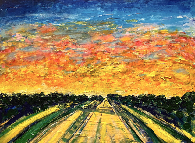 Dahlia Woods – New paintings. Dahlia’s trademark brilliant expressionist color palette reinvents Texas landscapes. Her semi-abstract scenes dazzle the eye and shake the imagination.
