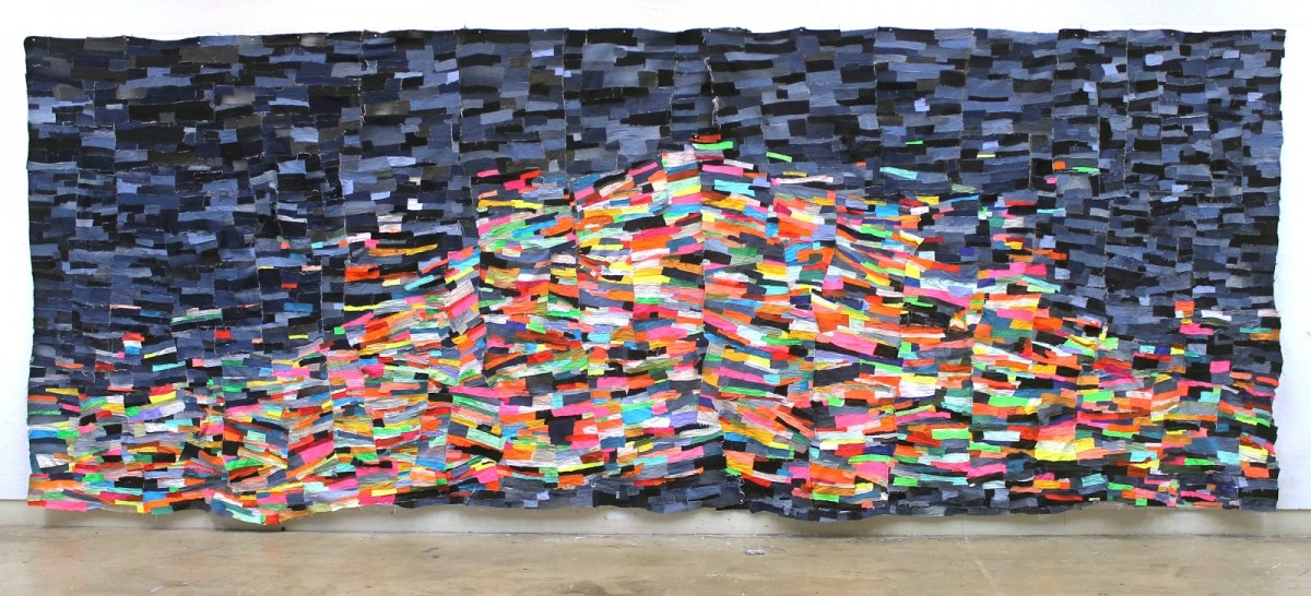 Each artist assembles their work from individual parts, piecing and weaving together painting and the textile arts to create brightly colored, bold, and expressive works from fragments.
