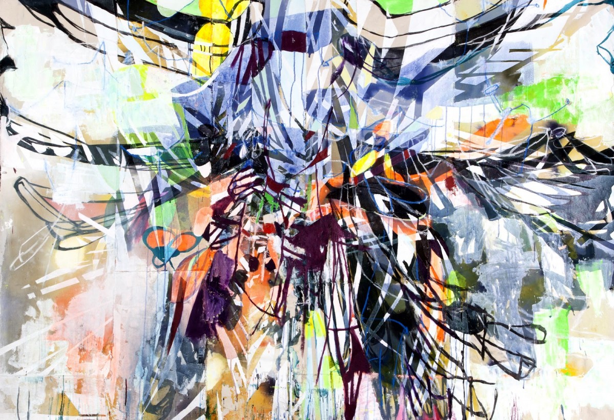 Cheney uses fragments of past paintings, old receipts, used airline tickets, and other remnants of past experiences, and works them into the texture of the new painting. They become one with the surface, imbuing the painting with memory, history, and time. The assemblage of different forms is quite physical, with paintings being wrestled together to create a new whole.