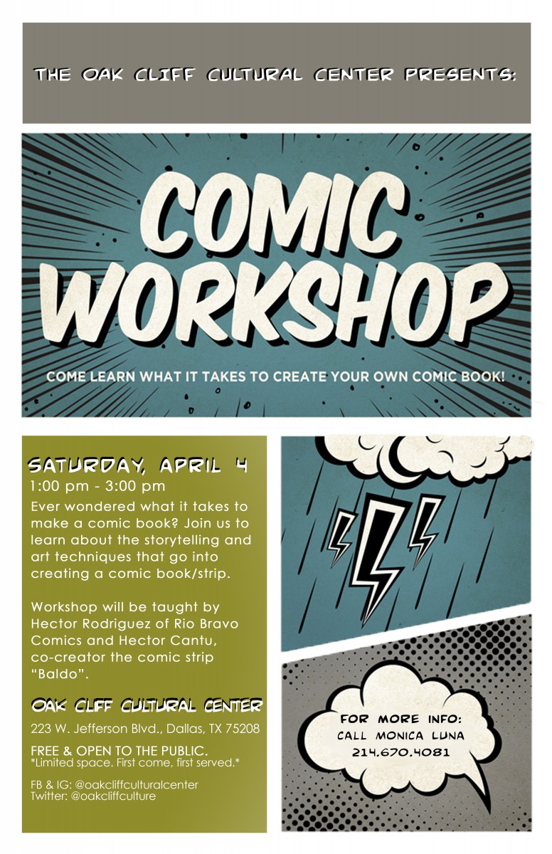 Workshop will be taught by Hector Rodriguez of Rio Bravo Comics and Hector Cantu, co-creator of the comic strip "Baldo".
