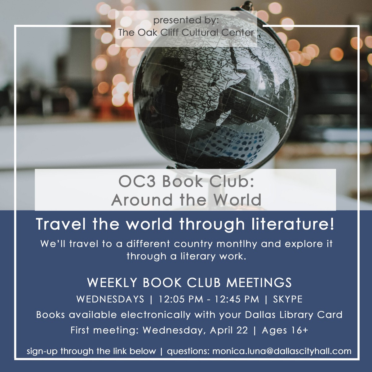 Join us for a fun and interactive book club. We will travel the world through literature by picking a book from a different country each month. All books will be ones that are available through the Dallas Public Library's e-book system.