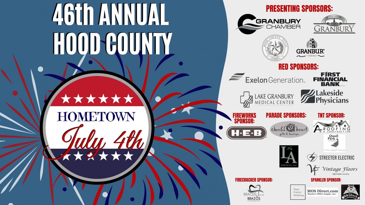 The Granbury Chamber of Commerce is pleased to announce that the Hood County Hometown July 4th Celebration Parade and Festivities, will take place July 3-4. 2020.