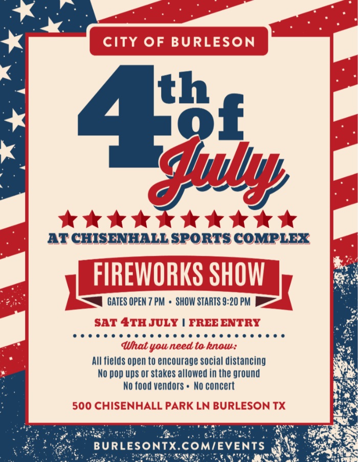 Bring your blankets, lawn chairs, and picnic to enjoy the City's annual 4th of July fireworks show. Gates open at 7 p.m. and fireworks start at 9:20 p.m.