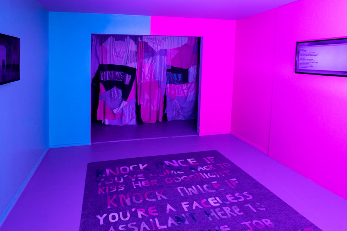 SP2 presents Gabriella Mykal, all i have, an immersive installation featuring videos and objects that explore, through a “selfie gaze”, an interior self in a constant state of transition. Enticing her viewers with the safety of a swimming pool’s shallow end, Mykal layers conversational notes app narratives with the complicated dealings of vulnerable hookups, true love trauma, fabricated mortality and mediated online personas.