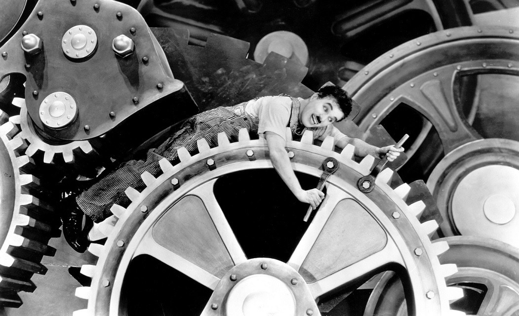 Modern Times is a 1936 American silent comedy film written and directed by Charlie Chaplin in which his iconic Little Tramp character struggles to survive in the modern, industrialized world. The film is a comment on the desperate employment and financial conditions many people faced during the Great Depression — conditions created, in Chaplin's view, by the efficiencies of modern industrialization. The movie stars Chaplin, Paulette Goddard, Henry Bergman, Tiny Sandford and Chester Conklin. It is notable for being the last time that Chaplin portrayed the iconic Little Tramp character.