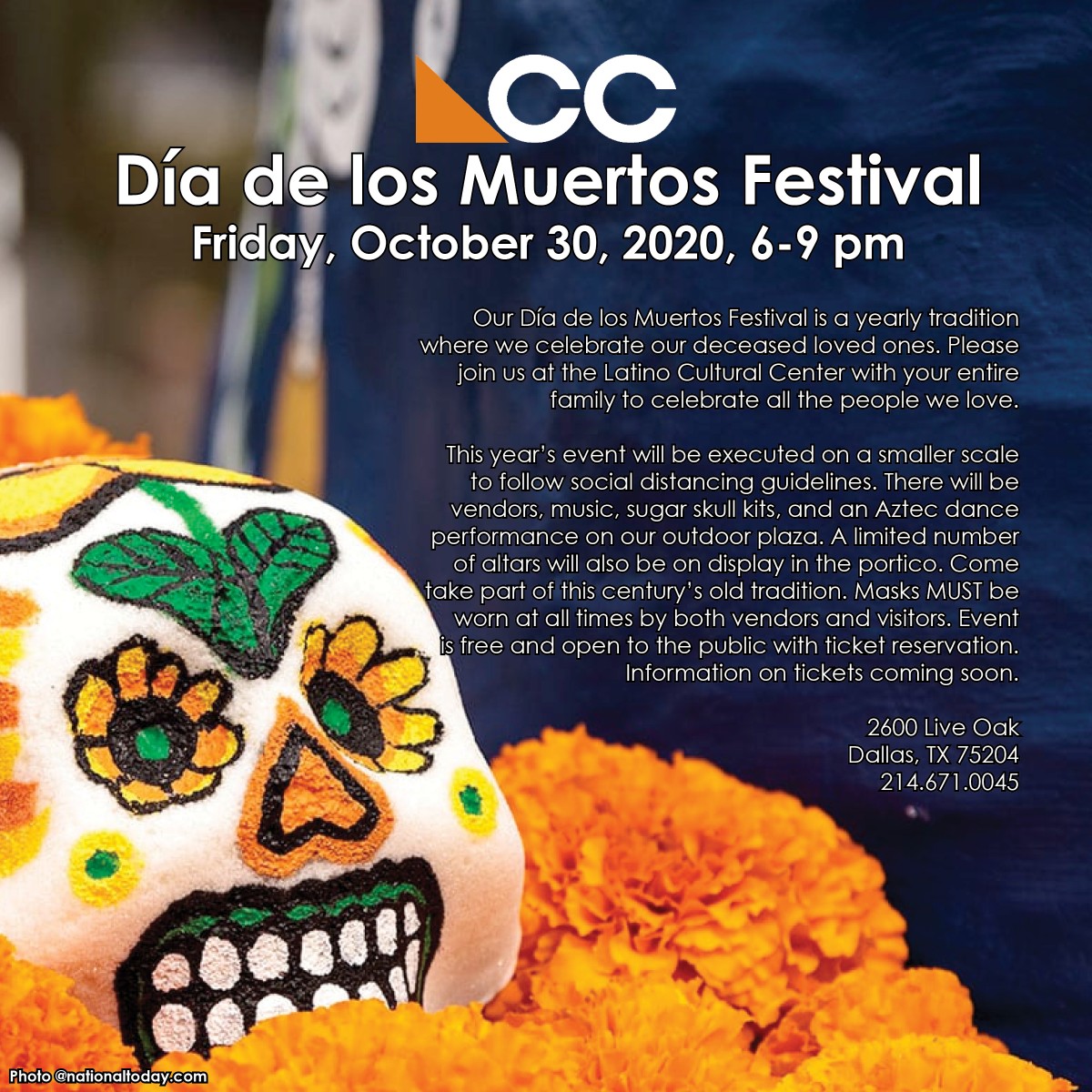 The event is free and open to the public with ticket reservations. Tickets available at http://www.ticketdfw.com/whats-on/2020/dia-de-los-muertos-festival/