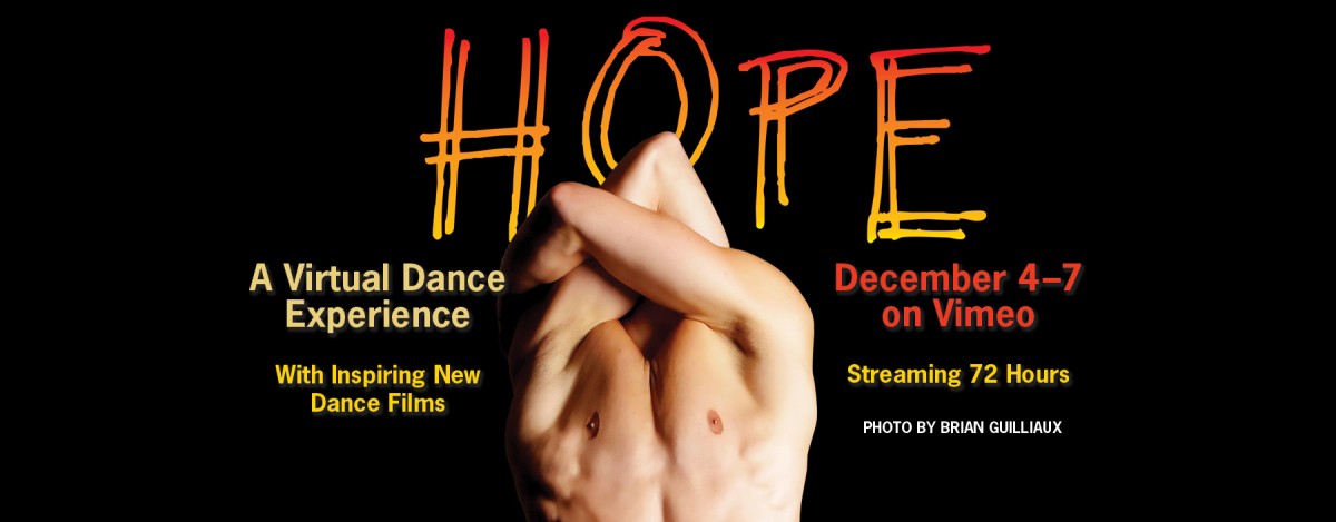 HOPE is a virtual performance of 6 dance films featuring world premieres by choreographers Adam W. McKinney, Jonathan Campbell, Kimi Nikaidoh, and Joy Bollinger along with one Bruce Wood classic and one seldom seen Bruce Wood work created in 2010. Included in two of these world premieres are original scores by Broadway composer Joseph Thalken and local musical artist Najeeb Sabour.
