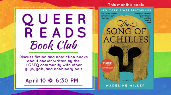 Join us at Queer Reads Book Club to discuss fiction and nonfiction books about and/or written by the LGBTQ (lesbian, gay, bisexual, transgender, and queer) community.