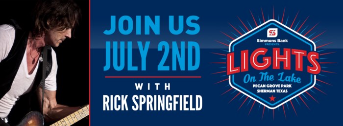 On Friday, July 2, 2021 the City of Sherman will hold our annual Independence Day Celebration! This is our 12th Annual LIGHTS ON THE LAKE at Pecan Grove Park West, so get ready to rock the night away with a FREE Rick Springfield concert! And stick around when the sun goes down for an incredible fireworks show, brought to you by Simmons Bank. Get there early and enjoy the food vendors or pack your own picnic! So round up your family and friends, grab your lawn chairs and enjoy this special event with us- you won’t want to miss it!
