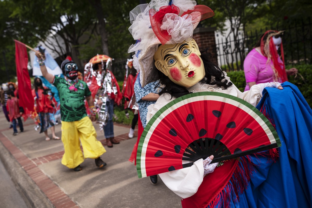 - Nuevo Fuego, directed by Jeffrey Colangelo (Cara Mía Theatre ensemble member and artistic director of Prism Movement Theater) in the main plaza featuring mask performances by Cara Mía Theatre’s actors, puppets and live music and danza by dance group Mitotiliztli Yaoyollohtli (Heart of a Warrior);