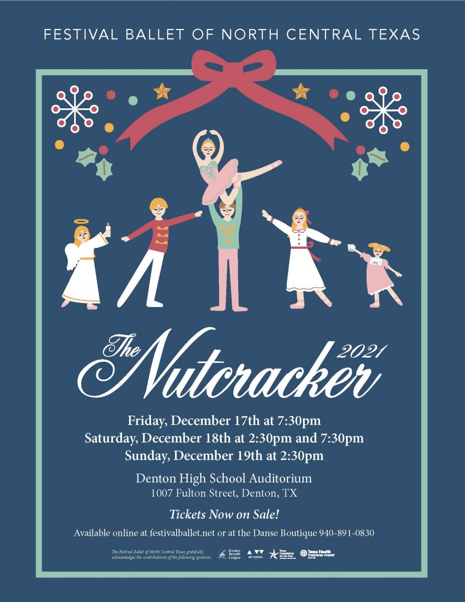 Festival Ballet of North Central Texas is excited to return to Denton for their 34th anniversary production of The Nutcracker. With the support and generosity of local sponsors, businesses, and volunteers, the company remains steadfast in its commitment in offering the local Denton community the opportunity to experience a timeless classical ballet that showcases professional and local dancers. We invite you to come share in Clara’s magical journey this season. The company offers four performances that begin December 17th at Denton High School.