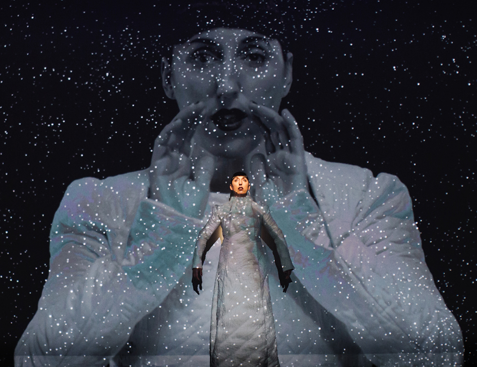 Part performance, part film, this multimedia experience maps a journey at once physical and psychological, earthly and cosmic. De Palma embodies the spirit of American journalist Nellie Bly, who serves as the starting point to challenge social and gender dynamics.