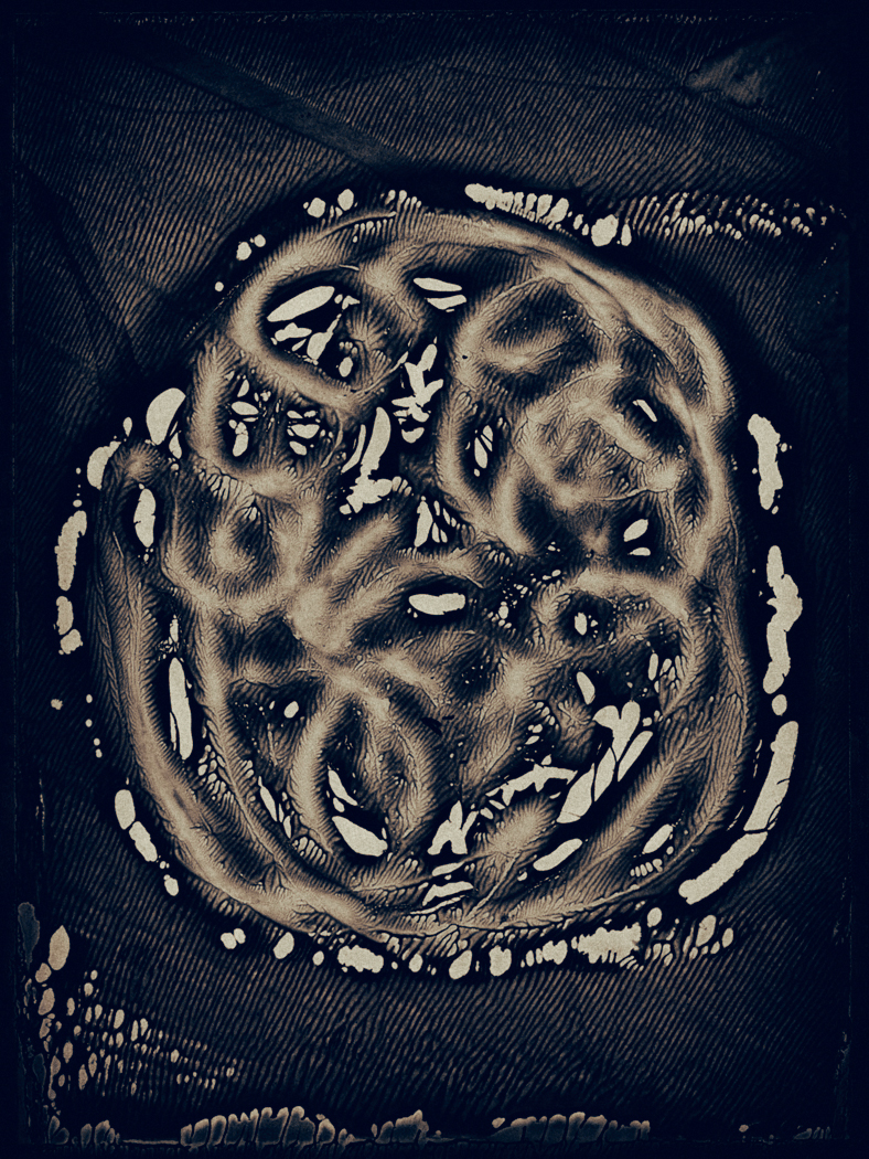 JM Gallery is excited to work with photographer and teacher Frank Lopez in presenting an exhibition of works by local photographers who explore the limits of technology and chemistry through experimental processes that challenge our notions of how photographs are made. These artists use a variety of processes—some old, some new, and some in combination—to create images that cannot be reproduced using standard methods. Frank, for example, scratches, tears, and bleaches exposed Polaroid film and then scans and retouches the images to create abstract works that illustrate the process itself. Susan Sponsler-Carstarphen offers cyanotype images on fabric that recall ancient “wanted” posters, but present portraits of men and women standing up for victims of racial profiling and police brutality. Amy Holmes George’s