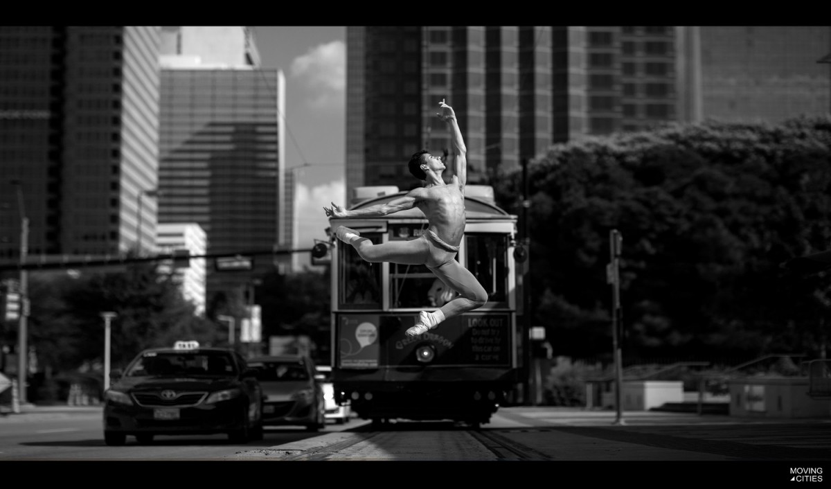 Moving Cities: Dallas captures the dancers performing in a wide variety of locations across Dallas, celebrating their unique talent and Dallas' diverse landscape. The production took place in 17 Dallas locations, featuring 56 dancers from ten different dance organizations.
