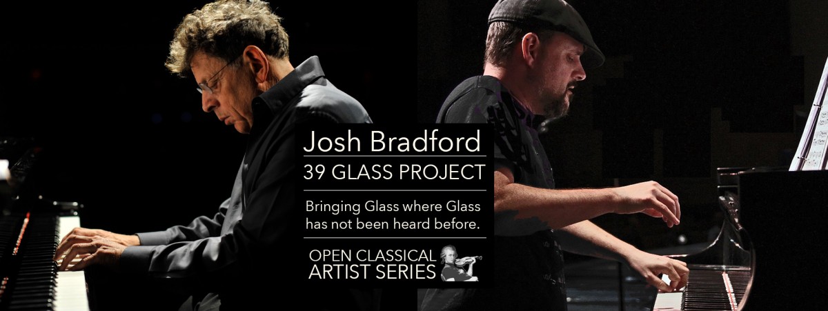 This concert serves as the kickoff for Josh Bradford’s own 12-18 month “39 Glass project”, a multi performance project dedicated to honoring the Glass legacy by bringing the music of Glass to audiences who have never been exposed to it, many in non-traditional concert venues. Bradford’s goal is to give at least 39 performances during the span of the project.