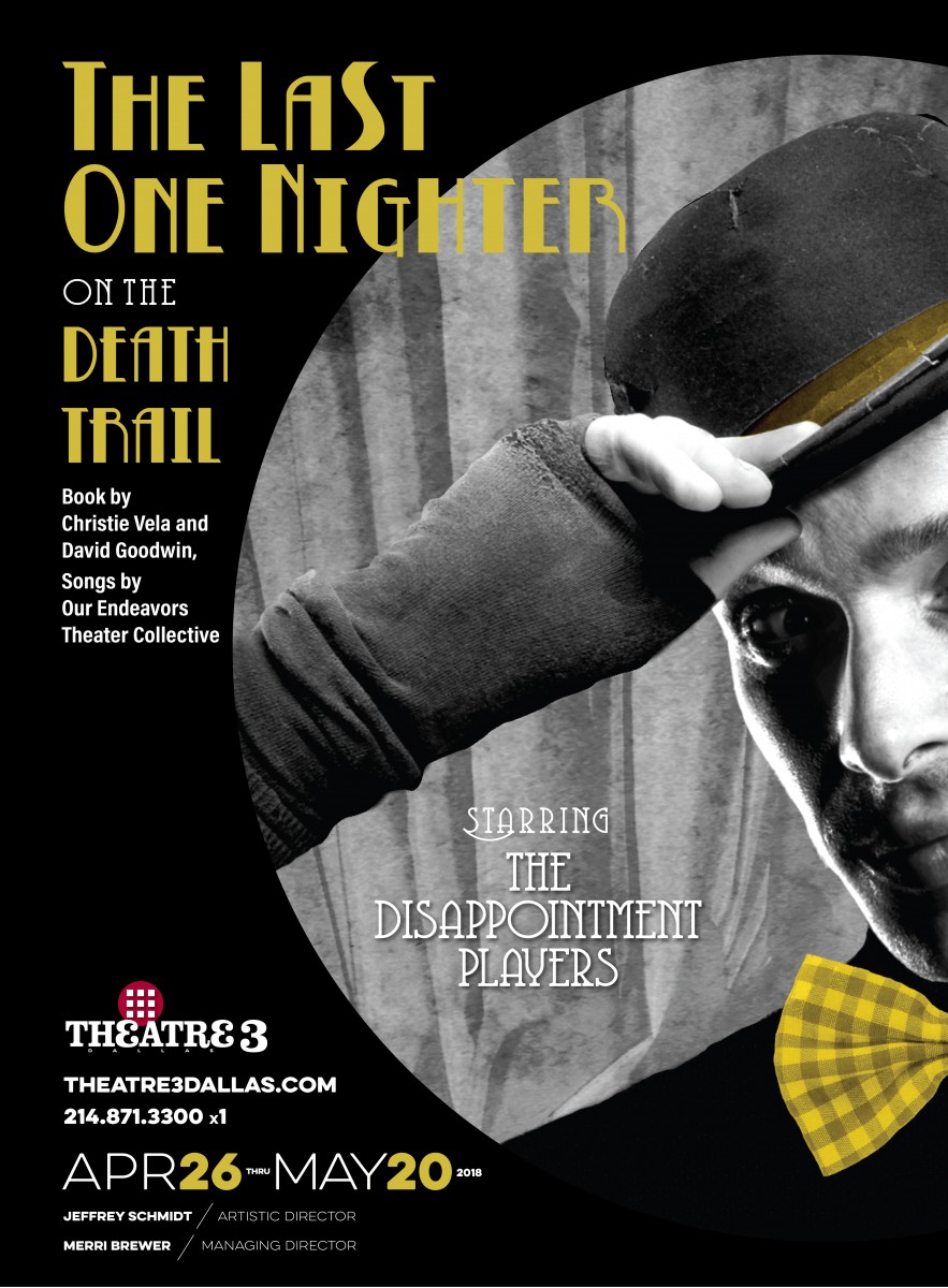 Presenting the professional world premiere of the musical The Last One Nighter on The Death Trail developed by local artists Christie Vela, David Goodwin and Our Endeavors Theater Collective. In the early 20th century, Elm Street in Dallas, Texas, was lined with vaudeville houses and movie theaters. In this fun and raucous story, a troupe of vaudevillians in the early ‘30s wait behind a theater in Dallas for their opportunity to go on stage. They’re the disappointment act and only go on if someone else cancels. It questions what is and isn’t art and why it is necessary. Watch out, though. It’s the prohibition era in the Bible Belt and the cops are cracking down on all unseemly behavior!