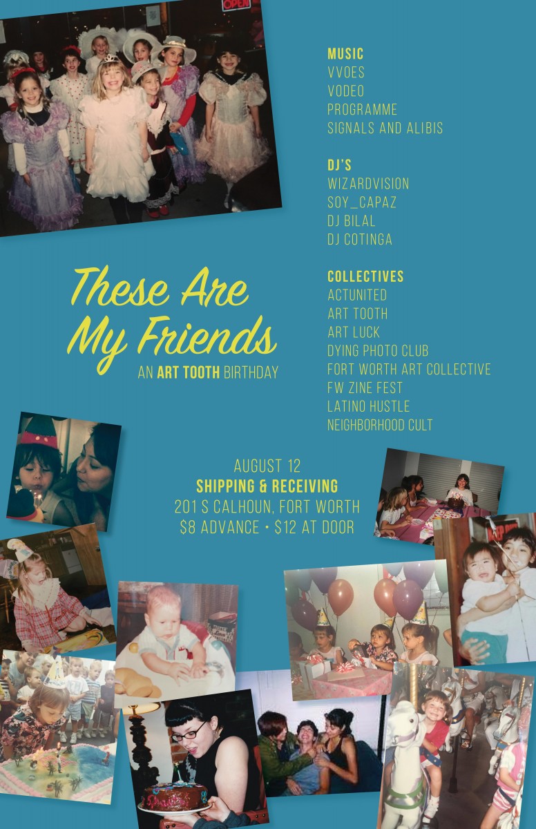 In honor of our first birthday, we ask you to join Art Tooth, Artluck,ACTunited, Latino Hustle, #dyingphotoclub, Neighborhood Cult Productions, Fort Worth Art Collective, and Fort Worth Zine Fest for a one-night-only art extravaganza at Shipping & Receiving Bar on August 12 that celebrates our growing and vibrant independent arts scene!