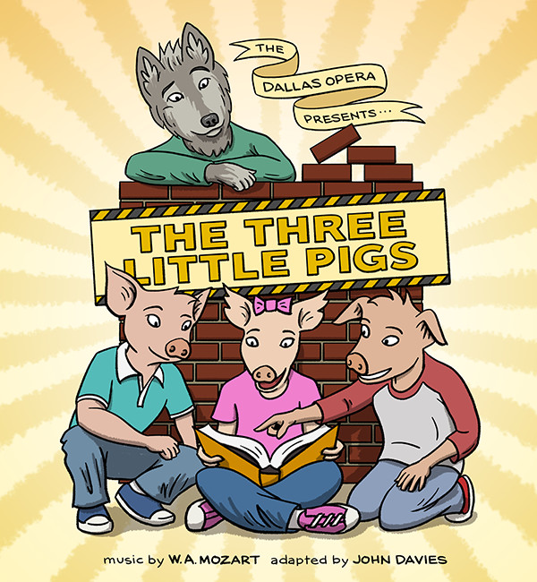 The Dallas Opera presents The Three Little Pigs, an exciting production for our Family Season/Educational Programs. Based on scenes from operas by Wolfgang A. Mozart, this children’s opera tells the classic tale with an emphasis on the importance of reading and harnessing a love for learning as the three piggies do their best to keep Wolfgang Bigbad at bay.