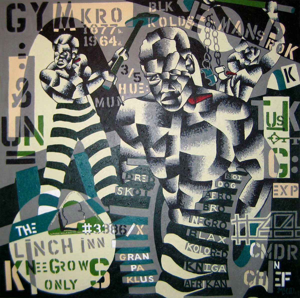 Freddie McCoo’s experiences growing up in St. Louis, Missouri, began to shape the artist’s core of artistic sensibilities from an early age. His modest upbringing, careful observation of the world around him, and subsequent deep interest in subjects that focus on social, economic, political, cultural and spiritual issues are clearly manifested in his paintings, murals, and mixed media art.
