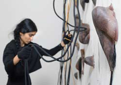 Iamuslima features a selection of prints, sculptures, textiles, archival material and other performative objects used by the artist to reflect While recognizing her Indian-Iranian-Afghani heritage, Khan reflects on her experience growing up in Texas. Inspired by writers such as Frantz Fanon and Jean Genet, she explores her lived experience through points of intersection: as a Muslim, an artist and a femme person of color.
