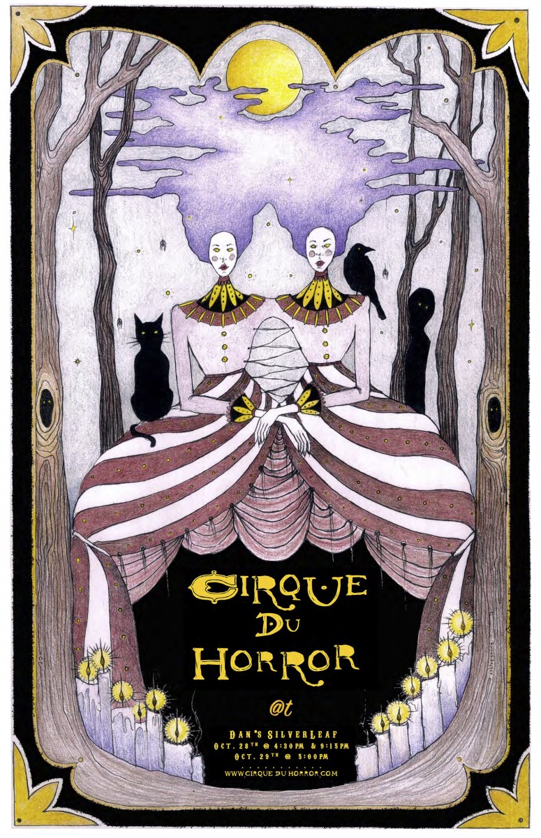 All of this is Cirque du Horror, a show that screams “Halloween!” It’s a little fright and a lot of laughter, with a touch of eye of newt and tail of rat. It was created in 2009 by local composer David J. Pierce, to provide the community with fine Halloween-themed entertainment cradled somewhere between “too scary” and “not enough.” Appropriate for the entire family, it is a delightful descent into the macabre. Come join us for a collection of bone-chilling poems, spine-tingling short stories, and spooky songs guaranteed to have you jumping from your chair with fright and splitting your sides with laughter