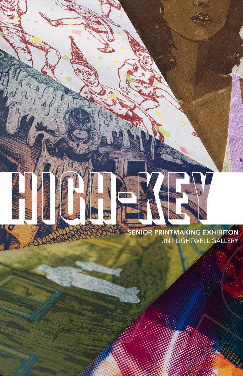 High-Key explores the themes of rich contrast imagery with strong graphic qualities. These five artists' works use a variety of subjects and concepts. Samuel Cowan's screen prints, etching sand artist's books explore complex notions of home and identity. Rene Cordova's screen prints, monotypes and relief prints depict comic Mexican American narratives. Maya Joubert's etchings use hand sewn elements to examine expressions of identity through fashion. Jonathon Quinnelly's screen print installations engage the dynamics of violence in play. Jacob Vasquez'sscreen print compositions create collections of appropriated images in various modes of translation.