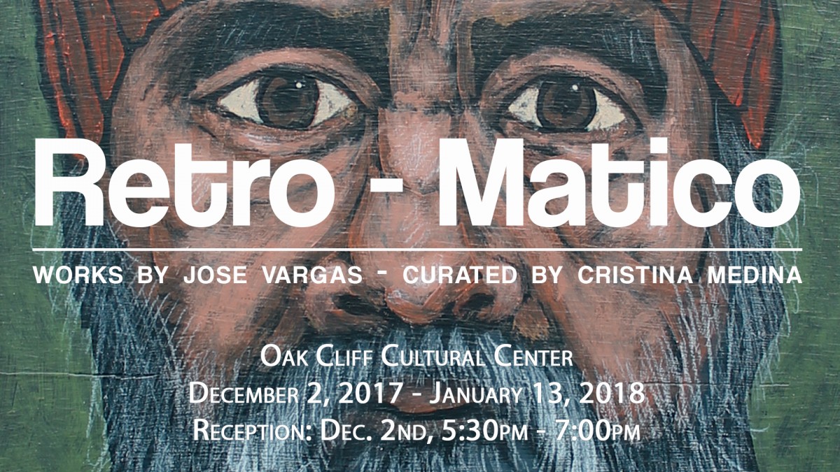 The Oak Cliff Cultural Center presents Jose Vargas’s Retro-Matico, a collection of art spanning from the late 1960’s to the present, curated by Artist and professor of Art, Cristina Medina.