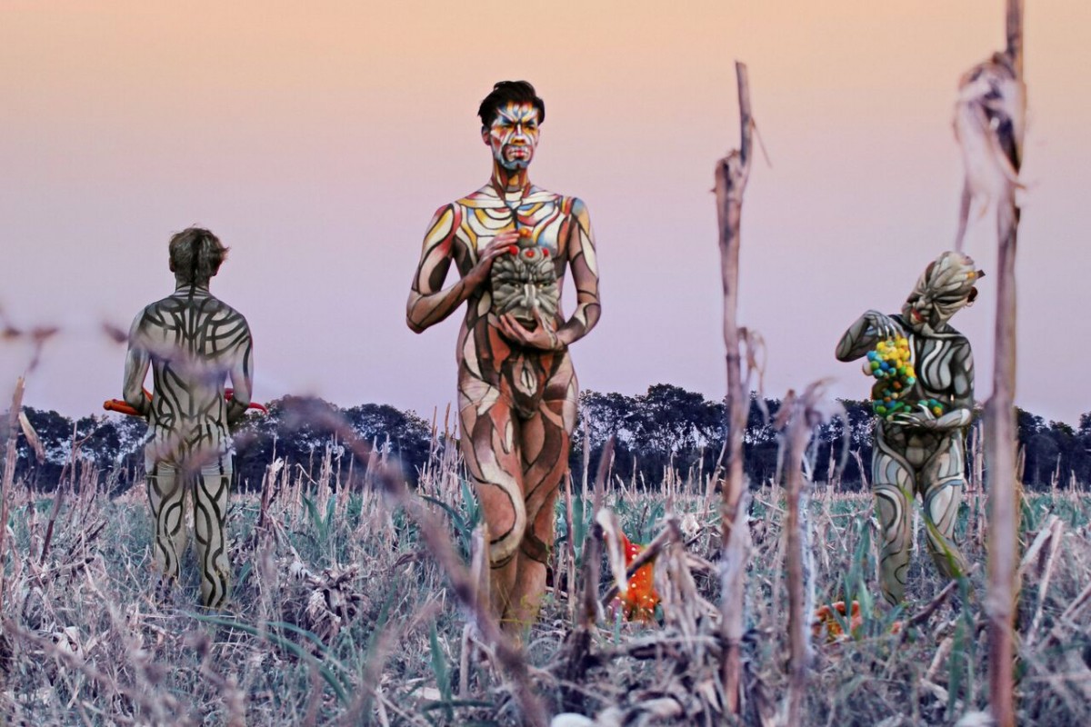 Burt asserts that his work adapts to the perspective of the observer, encouraging viewers to project their own dreams and distractions onto these fascinating creatures. In Through the Dark Place, Burt presents a much more tangible view of his fantastic world by staging hand-painted, costumed actors alongside his felted Cuddle Doobie sculptures to portray the Mugawumps in desolate landscapes. Burt’s exciting new experimentations and methods bring the Dark Place to life in a revealing light, blurring the line between what is human and what is Mugawump.
