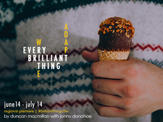 Making sense of the world is often too complicated. Sometimes making a list of Every Brilliant Thing allows us to simplify our existence. Written by Duncan Macmillan with Jonny Donahoe, this theatrical experience engages the audience with laughter as the list grows longer and longer. This story reminds us to forgive often, love always, and ponder: what is on our list?