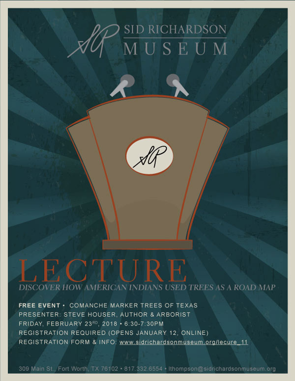 Like an early road map, American Indians used trees to mark significant natural features such as trails, low water crossings, or camp grounds. Today, these old road signs are known as Indian Marker Trees. These Indian Marker Trees are the living witnesses to the history of a past civilization and their incredible way of life. Steve Houser is an arborist, founding member of the Texas Historic Tree Coalition, and co-author of the 2016 book Comanche Marker Trees of Texas. Join us as Mr. Houser shares some history about Indian Marker Trees as well as recent discoveries of Indian Marker Trees in North Texas.