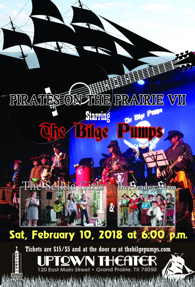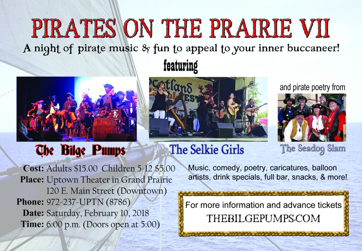 The pirates are back on the prairie as Grand Prairie's Official Pirate Band, the Bilge Pumps, will be returning to the Uptown Theater to put on an evening full of pirate music, great fun, and nautical nonsense for the entire family!