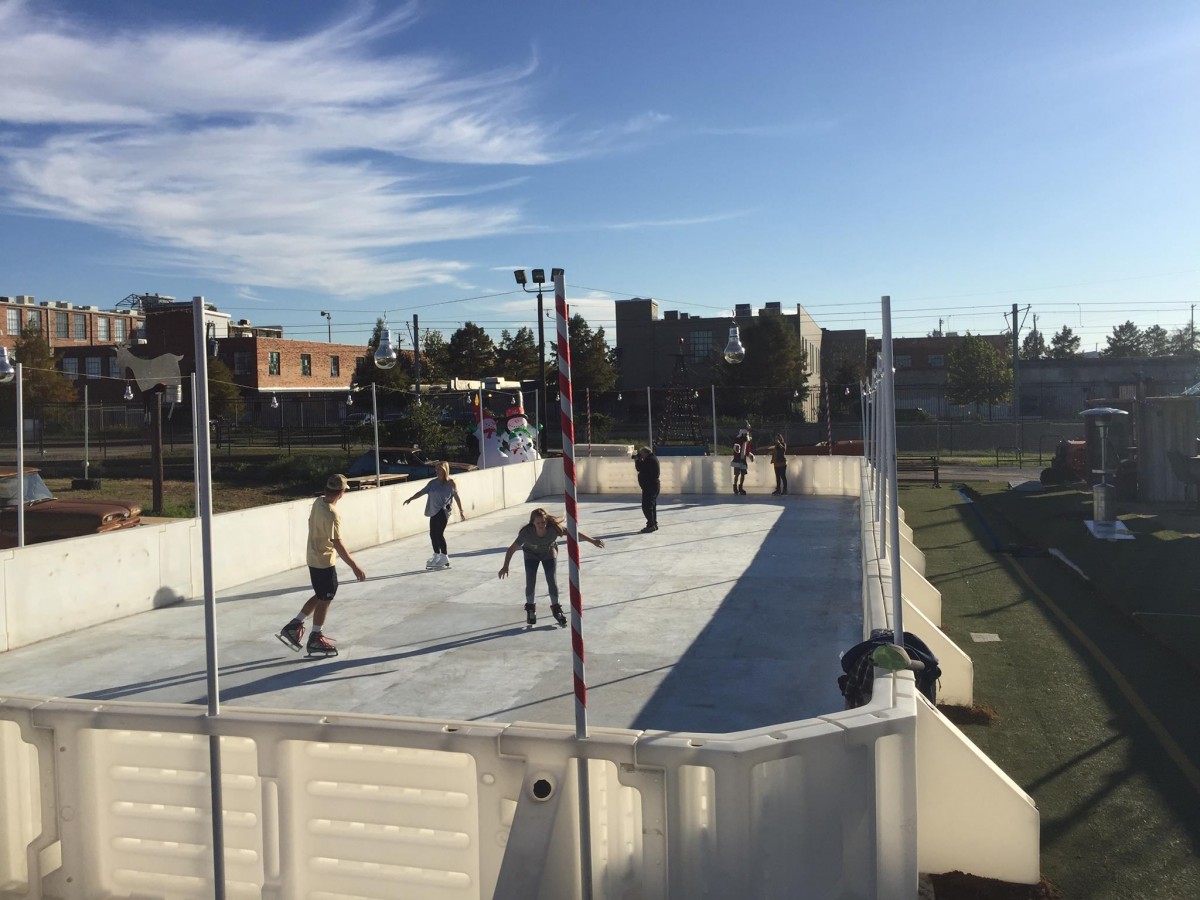 We installed an outdoor, Super-glide, ice skating rink and will be ready to skate November 24th. The 32-foot x 100-foot skating rink can accommodate up to 90 skaters at one time. This is the same rink that was in Klyde Warren Park when it originally opened. The rink was owned by the Dallas Stars former owner, Norman Green, and now you can skate on it for a limited time.