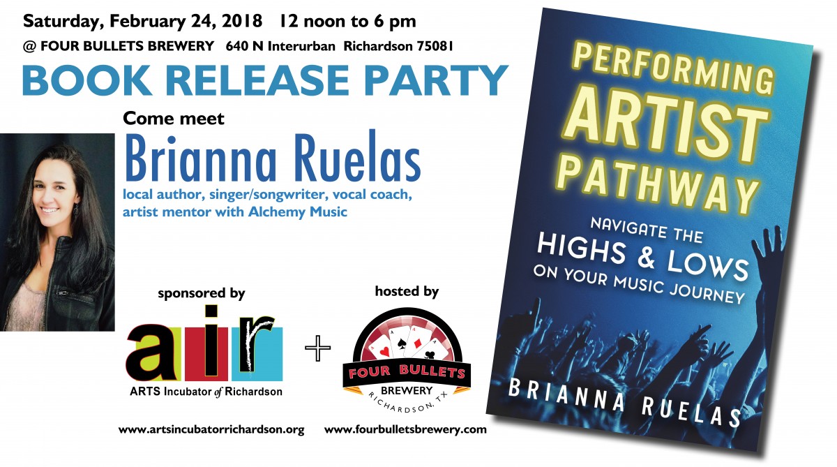 Join AIR for a Book Release Party! Meet Brianna Ruelas – local Richardson author, singer/songwriter and vocal coach. Food from Victor Hugo's and Live Music from noon-6pm by emerging Country/Folk Duo out of Austin, Of Sea and Stone, as well asBook local artists Frankie Leonie, Charlie Memphis and Peyton Stilling!