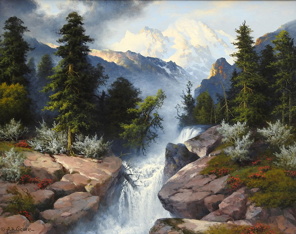 A.D. Greer (1904-1998) knew how to handle light, color and composition with a luminous quality and realistic style and has remained one of the best landscape painters ever seen.