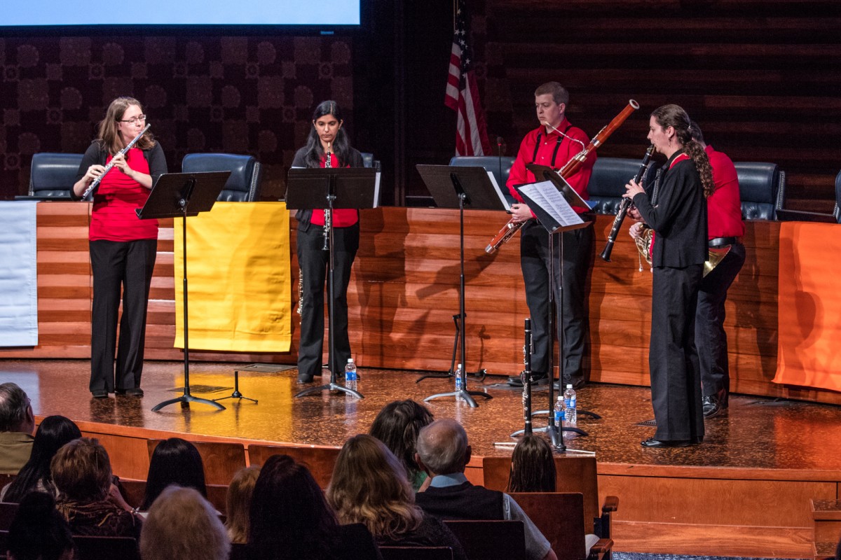The August Winds have been performing since they met as freshman at Indiana University in 2000. Join Ruth Ann Ritchie, flute; Natasha Merchant, oboe; Marianne Shifrin, clarinet; Michael Jones, bassoon; and Jonathan Kuhns-Obana, horn, for works by Ross Edwards, Igor Stravinsky, and Ottavio Respighi. Pianist Libby Vanatta will also be featured on Poulenc's popular Sextet for Wind Quintet and Piano.