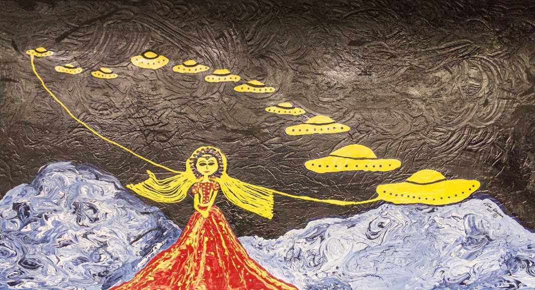 From the artist: “I am a Visionary Alien Artist. My artistic talent started in 1999, with a vision of Saint Mary and eleven angelical alien beings. Now, my vision is to build my own Alien Museum in the shape of a spaceship.”
